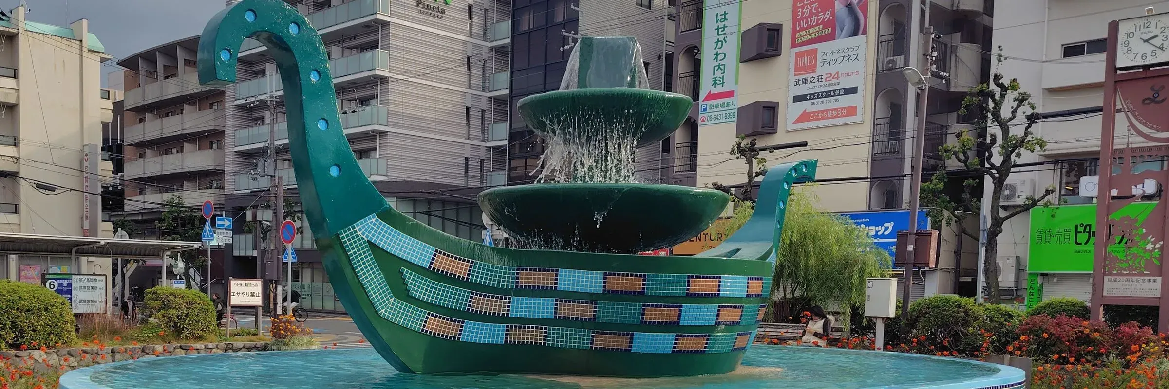 | Tags | #Transportation , #Bus , #Bus_Terminal , #武庫之荘 , #阪神バス , #路線バス , #タクシー , #Water_Fountain , #flower_bed , #Park , #Garden , #Town_Square , #Gondola , #阪急沿線 , #阪急神戸線 , #Hankyu_former_Japanese_railway_company |